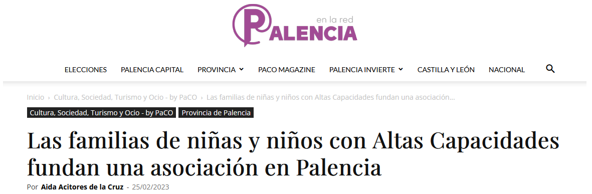 Página web de la Asociación Palentina para el Apoyo a las Altas Capacidades